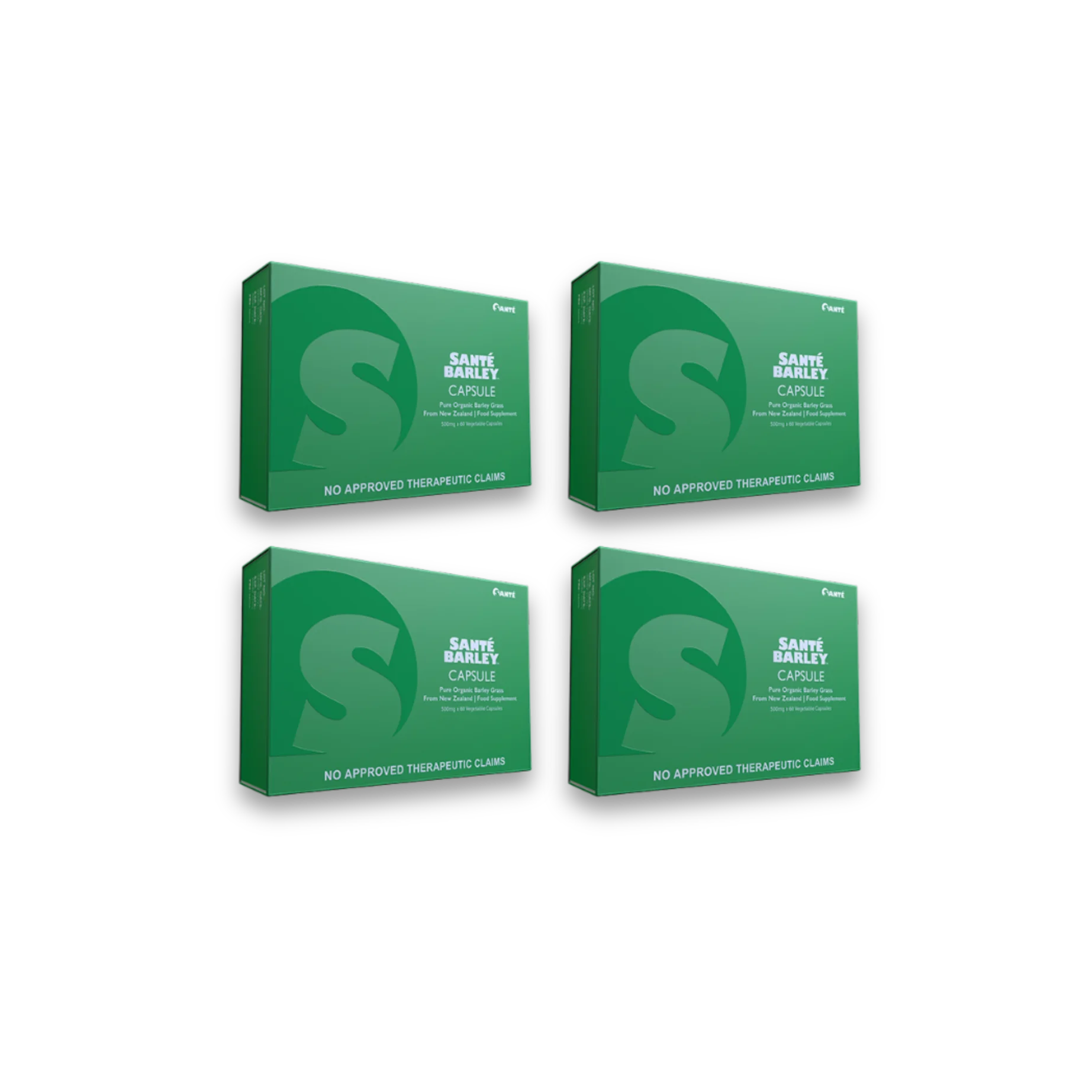 - Total of four (4) Box of Santé Barley™ Pure Capsules (500mg x 60 capsules per box)