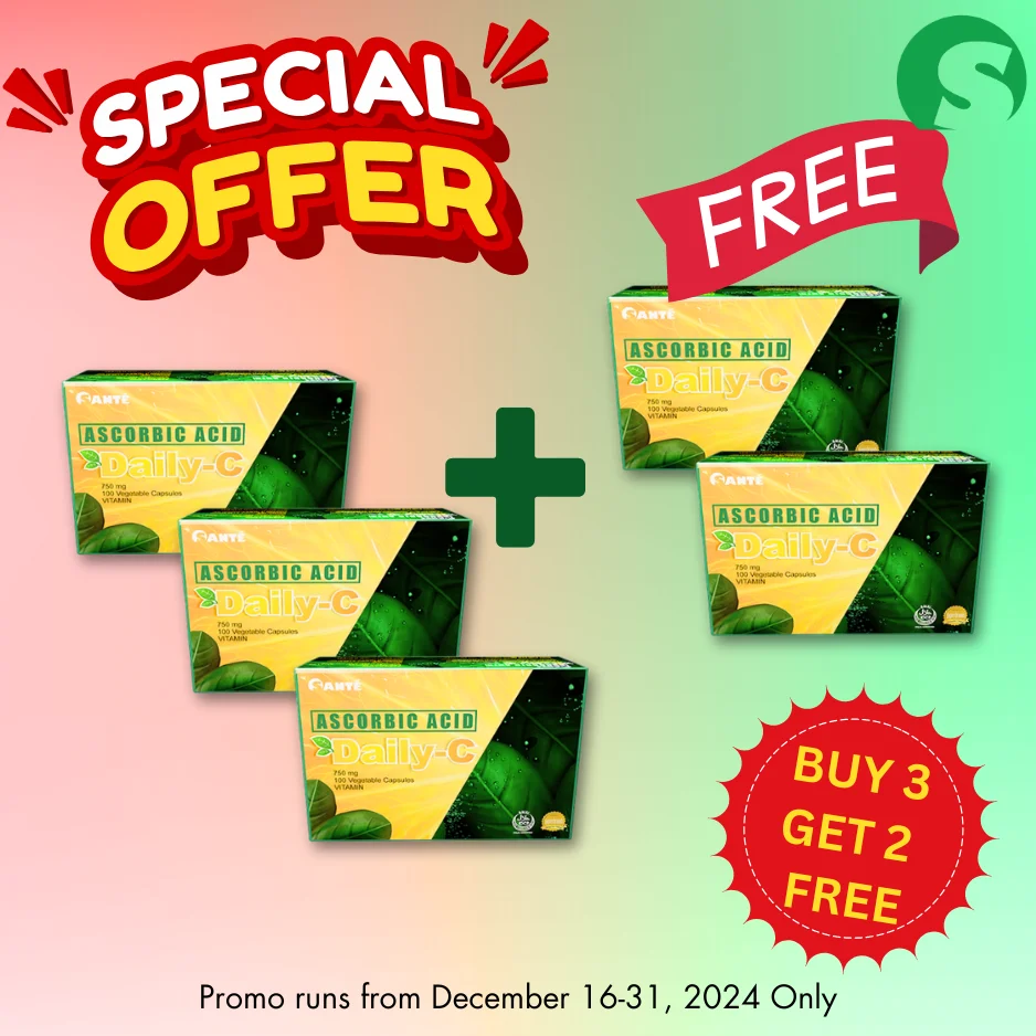 3+2 Special Offer Boxes Daily C by Santé – Non-Acidic Vitamin C (750mg / 100 Capsules) per box